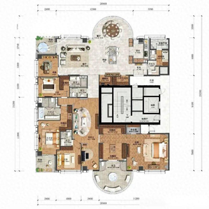 很多人对空中豪宅的想象,要么是摆满浮夸家具的“博物馆”,要么是为了造型牺牲储物的“花架子”,但最近看到的这个户型,直接把“面子”和“里子”揉碎了糅在一起——圆形餐厅+半圆主卧浴,关键还保持方正户型,这才是豪宅该有的“人间烟火气”啊!